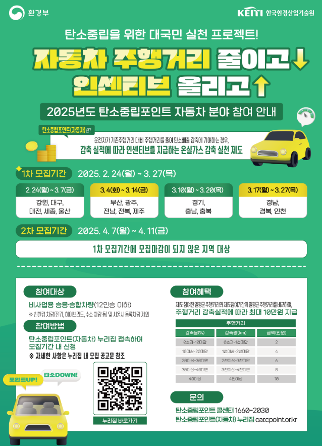 한국환경산업기술원 탄소줄입포인트 제도 상담센터 1660 - 2030(평일 9시~18시)